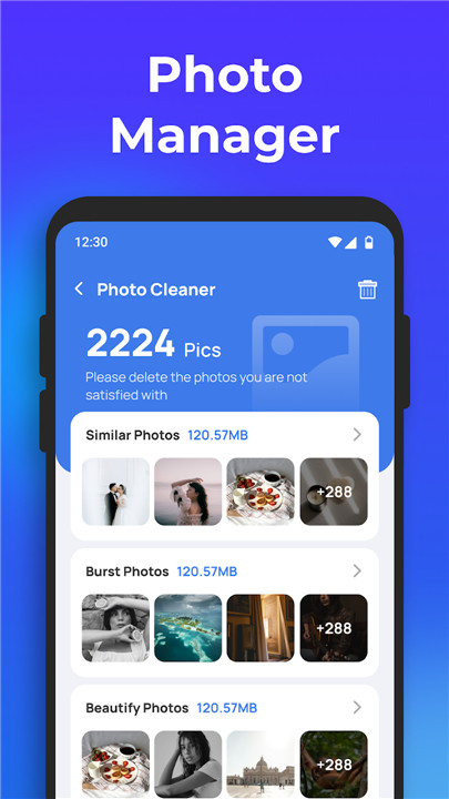 Automatically find and manage duplicate or similar photos, so you can keep only your favorite memories while saving storage.