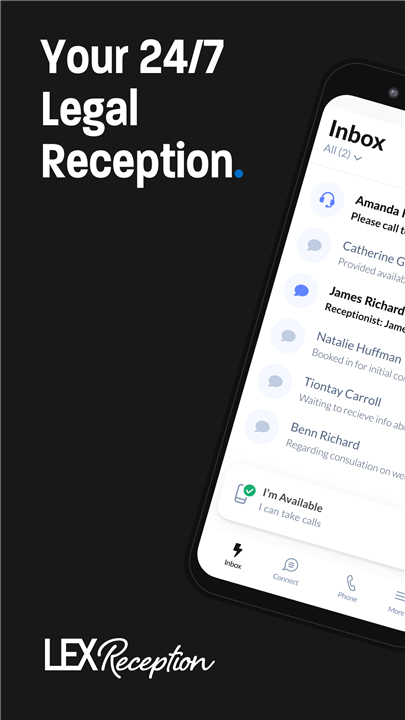 A: The app is designed for busy professionals who already have an active LEX Reception live answering account. Without an active account, the app’s features and content will not be accessible.
