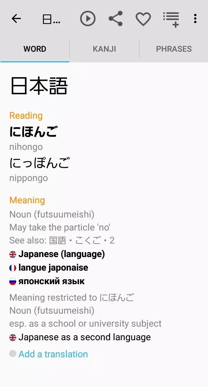 ★ Search and Translate: Easily search for words or phrases and get instant translations, definitions, and usage examples. Enhance your understanding of the language and culture.
