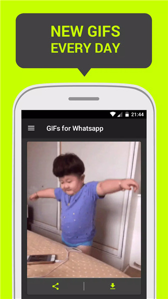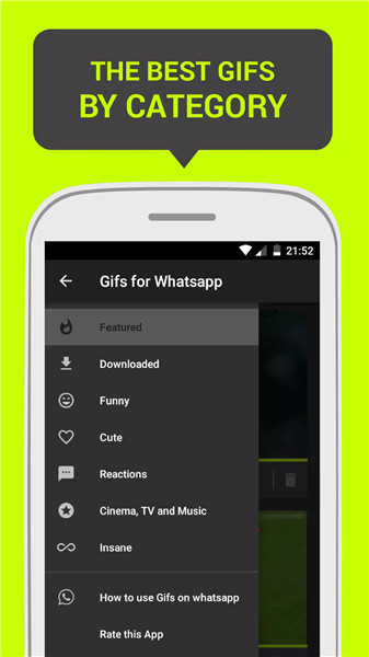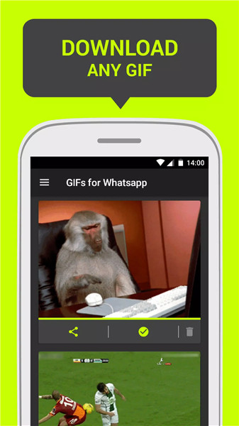 Use the search bar to find specific GIFs (e.g., “happy,” “celebrate,” “facepalm”).