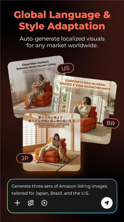 • Global Localization: Reach international audiences with automated localization, adapting visuals for any language, style, and cultural nuance.