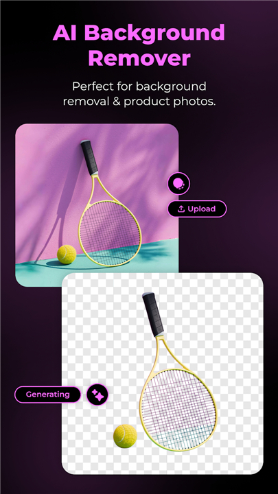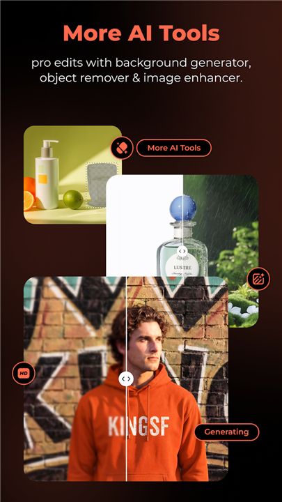 • AI Background Generator: Design stunning lifestyle scenes from 500+ presets or simple text prompts.
