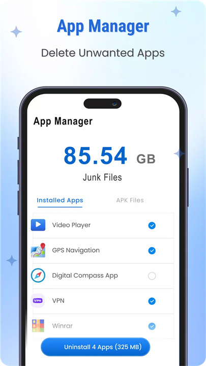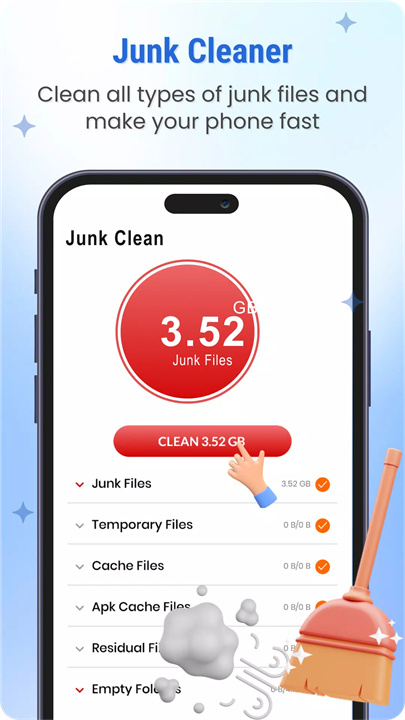 《手机清洁器-多合一》——您手机的好帮手,专为你清理手机垃圾和提升性能而设计。只需轻轻一按,就能轻松清除缓存和无用文件,瞬间释放更多存储空间。我们还会实时监控您的RAM和内部存储情况,确保您的手机始终运行流畅。清理缓存,流畅体验,您的手机小管家!
