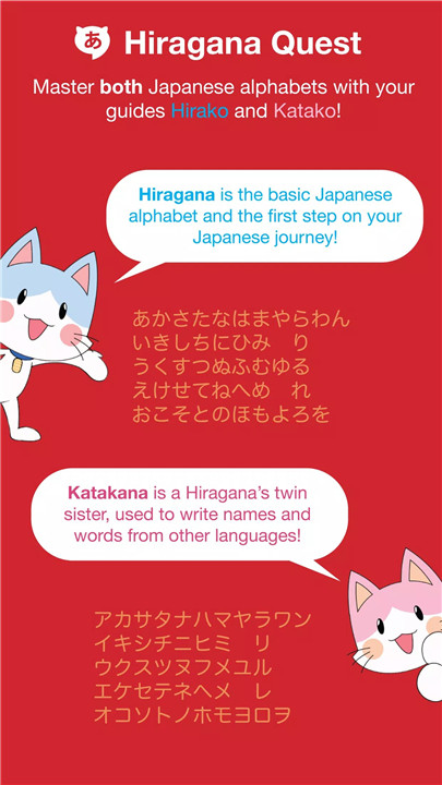 Hiragana Quest, your fun and effective Japanese language learning app designed to master the art of reading and writing the Hiragana and Katakana characters!