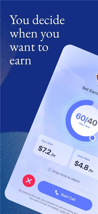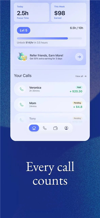 + Tiered Earning Rates: The platform rewards loyalty and frequency. As you increase your calling volume, your hourly rate scales upward, allowing dedicated users to maximize their earnings.