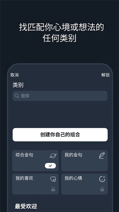 丰富分类:涵盖工作、爱情、健身、自尊等多个主题,按类别筛选金句,让您随心选择最需要的激励内容。