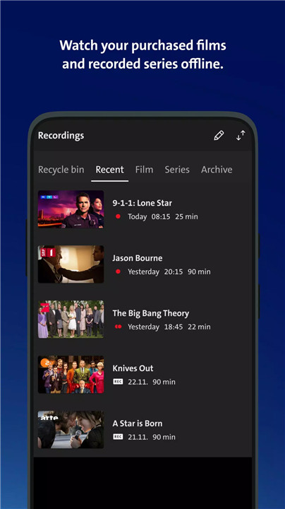Swisscom blue TV isn't limited to your home! You can watch and schedule recordings while you're on the move, so you can enjoy your content anytime, anywhere. Plus, you can view your recordings and purchased videos offline on your mobile device, making it perfect for travel.