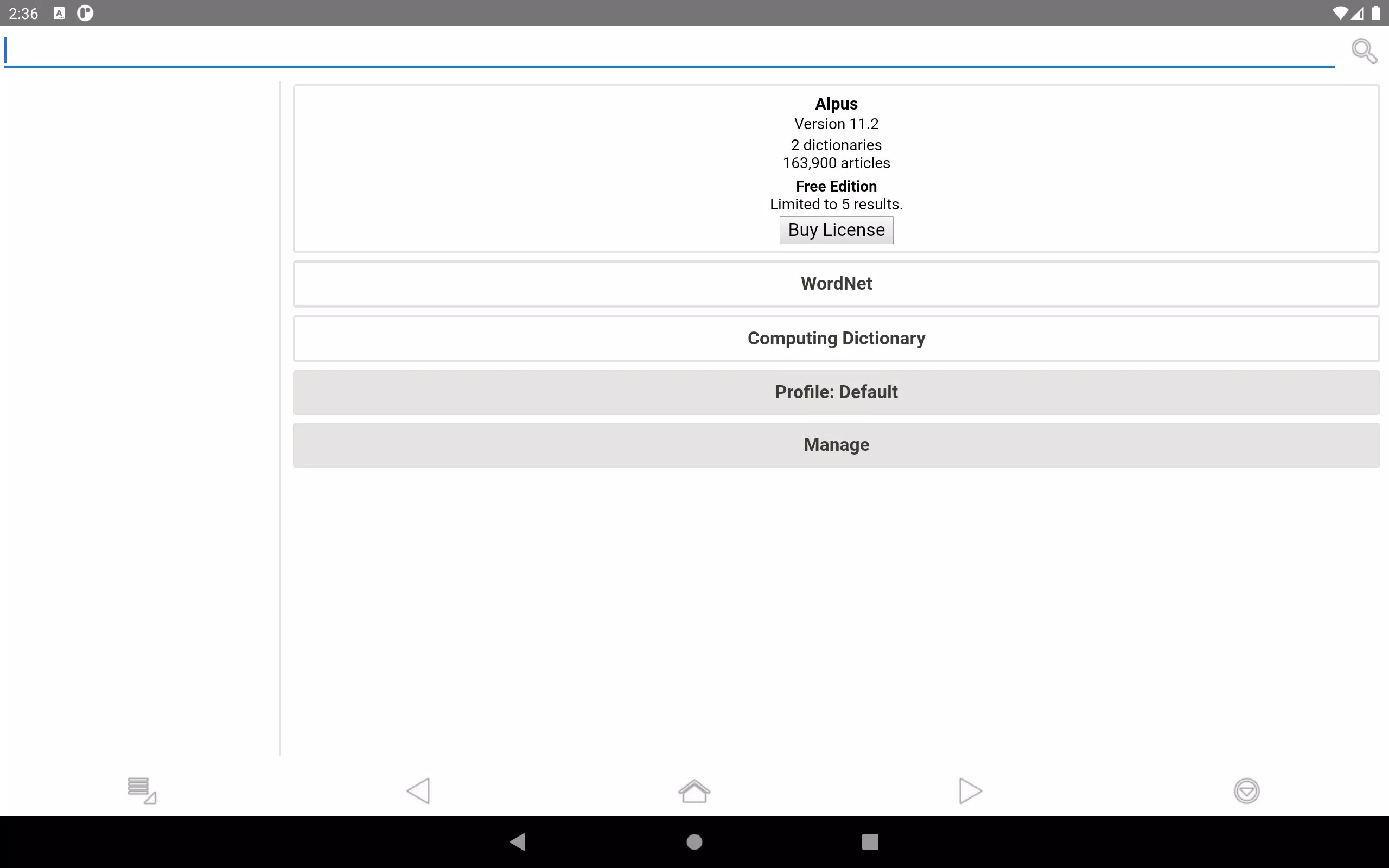 Once your dictionaries are set up, Alpus runs entirely offline. No data connection is needed to search, browse, or manage your dictionaries, ensuring privacy and consistent access.