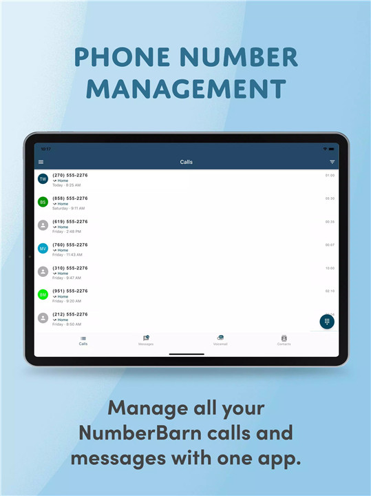 The app makes it simple to manage your calls, texts, and voicemail messages in one place. View all your messages, listen to voicemails, and organize your communication efficiently. NumberBarn allows you to stay organized and in control of your virtual phone number.