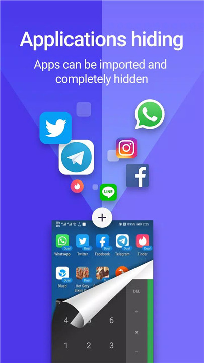 App Hider allows you to import apps that you want to hide, and then uninstall them from your home system. You can clone apps to access multiple accounts and protect your privacy by turning App Hider into a Calculator Vault. All hidden apps, photos, and videos can be accessed only through the app itself.
