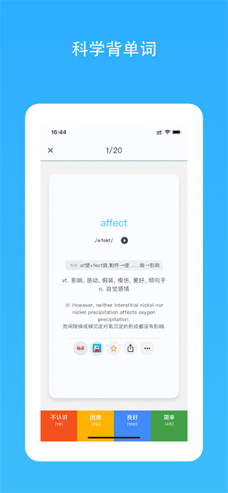 这款应用的科学背单词功能非常强大,通过科学的记忆算法,它能自动安排学习和复习,仿佛一位贴心的学习导师,根据你的记忆规律,合理规划单词的学习进度。让你在轻松的氛围中,快速背诵单词,提高词汇量。