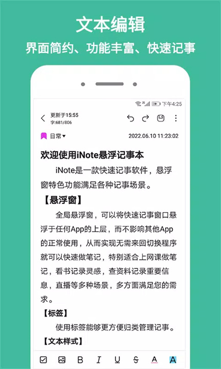2、iNote悬浮记事本支持哪些文本编辑功能?