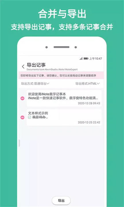 4、iNote悬浮记事本如何进行记事合并与导出?