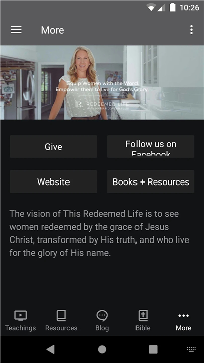 • The Redeemed Life App offers a variety of discipleship tools and resources designed to strengthen faith and encourage spiritual growth.