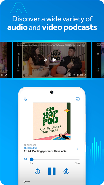 • Save your favorite podcasts and music to enjoy anytime, even without Wi-Fi.