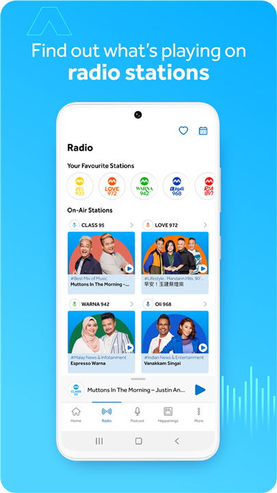 Tune in to Mediacorp’s diverse radio stations, each offering a unique listening experience: