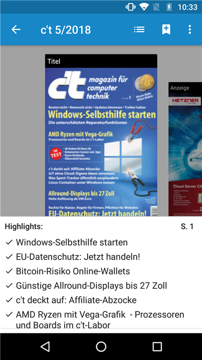 Read c't as interactive edition on your Android tablets and smartphones Download the latest version of c’t Magazin to enjoy new features and updates immediately!