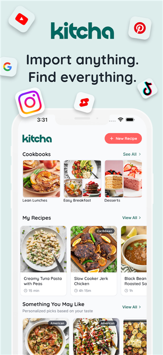 A: The app allows for effortless recipe collection by letting you import content instantly from TikTok, Instagram, YouTube, and Pinterest. Instead of letting your favorite food videos get lost in cluttered saved folders across different apps, you can bring them all into Kitcha to create one unified and searchable library.