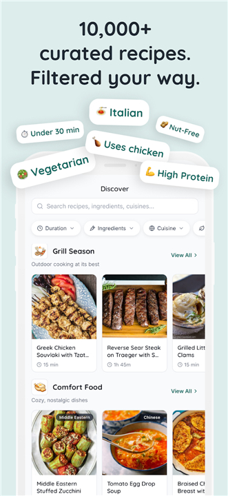 • Shift between manual planning or automated suggestions based on your pantry and dietary needs.