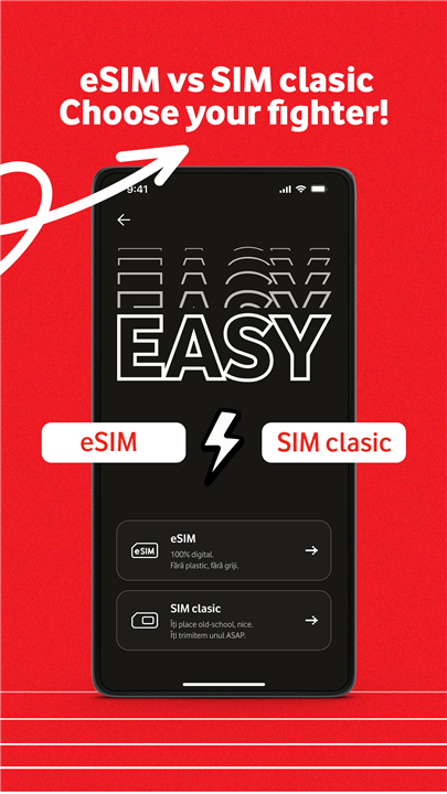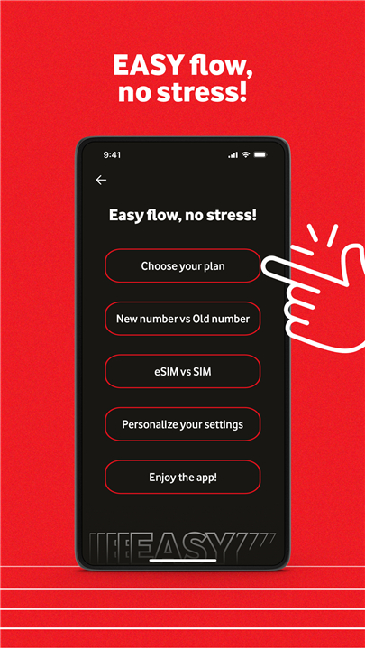 eSIM, 100% digital, easy to pay, easy to activate, easy to switch Download the latest version of Vodafone EASY to enjoy new features and updates immediately!