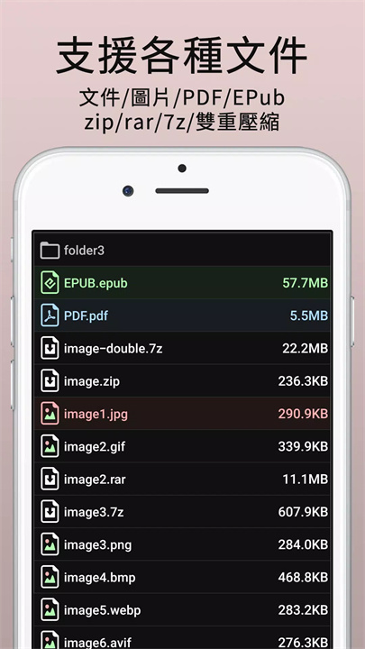 支持TXT、EPUB、PDF、CSV、SMI、SUB、SRT、JPG、PNG、GIF、CBZ、CBR等多种文件格式。