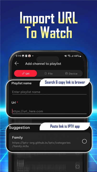 2. Copy the M3U link or download the playlist file.