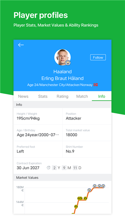 A: Absolutely! You can receive updates for iconic clubs like Real Madrid, Barcelona, Manchester United, Liverpool, Manchester City, Dortmund, and more. It also lets you track your favorite players, including world-famous stars like Ronaldo, Messi, Haaland, and Mbappe.
