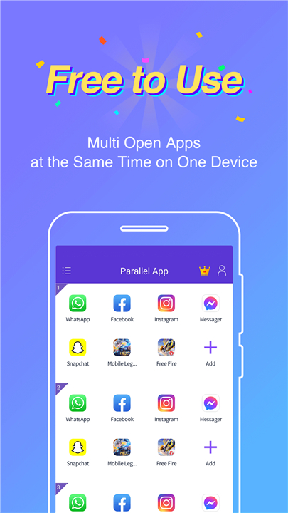 Try to launch multiple same apps at the same time,Run 2 accounts/multi accounts Download the latest version of Parallel App - Dual App Cloner to enjoy new features and updates immediately!