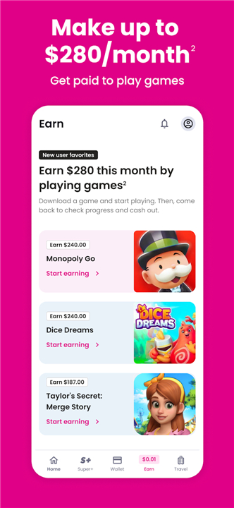 • Transform your leisure time into profit by playing games, completing surveys, and finishing rewarding missions.