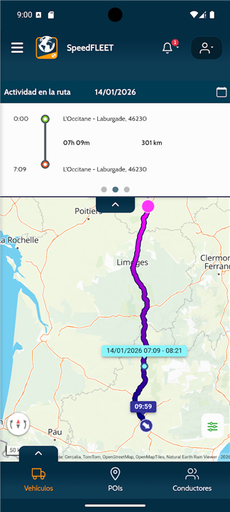 • Access historical route data for any selected date, including start and end points, stops, and journey duration.