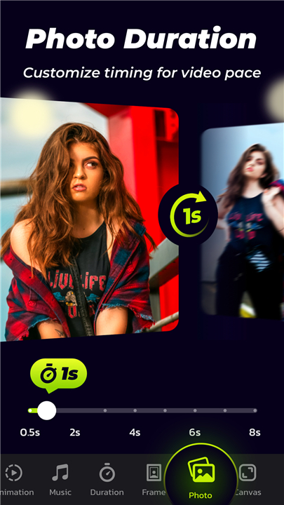 • Control the pacing of your slideshow by setting transition times from 0.5 seconds up to 8 seconds, ensuring smooth storytelling within your chosen time limit.