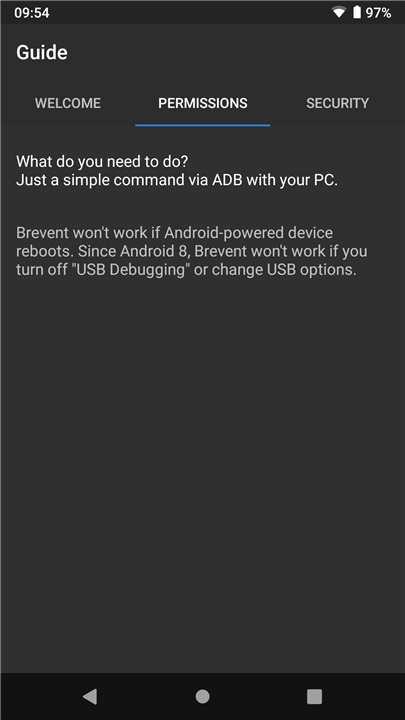 • Brevent will not function if debugging is disabled or if USB options are modified.