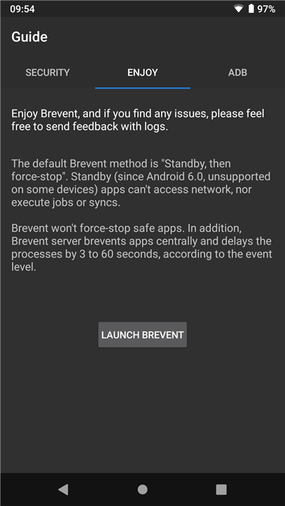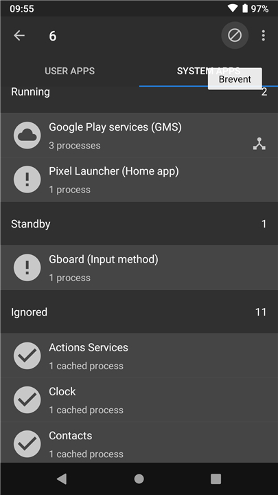• When apps overstay their standby duration, or when they are swiped away from the recent apps screen, Brevent will actively force-stop them.