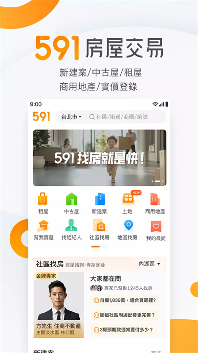 [591房屋交易]是台湾领先的房屋资讯平台,致力于为用户提供最全面、最及时的房产信息。租屋、中古屋、新建案、商用地产,还是最新房价走势,591都能帮助您轻松找到心仪的房源,每日吸引超过60万用户在线找房,成为台湾房屋交易的首选平台。全台房源一手掌握,591让找房更简单。