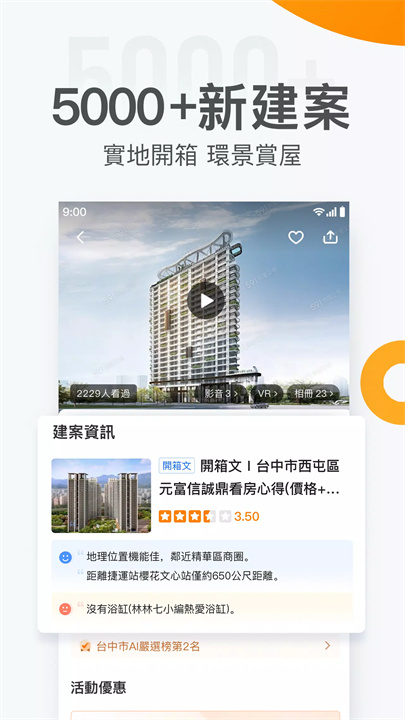 对于新建案的购房者,591提供了详细的新屋资讯,包括最新公开销售、热门建案、预售屋和新成屋等信息。平台的「720全景看房」功能让您身临其境,随时随地查看房源,避免了传统看房的局限。而「建案开箱」服务通过专业小编的实地探访,让您全面了解房屋的各项细节,做出明智的购房决策。
