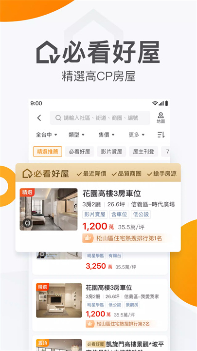 搜尋功能優化:輸入周邊配套地標,即可快速查詢附近的物件,提高您的找房效率!