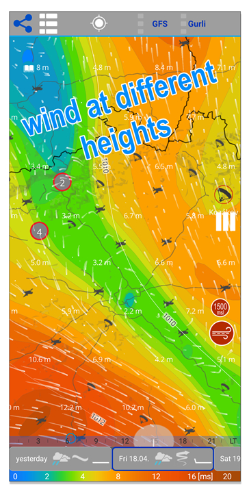 A: Yes, Aero XC presents wind speed and direction for each altitude layer, using a flying-friendly color scale. This helps you identify favorable wind bands or avoid problematic layers that could affect safety and efficiency.