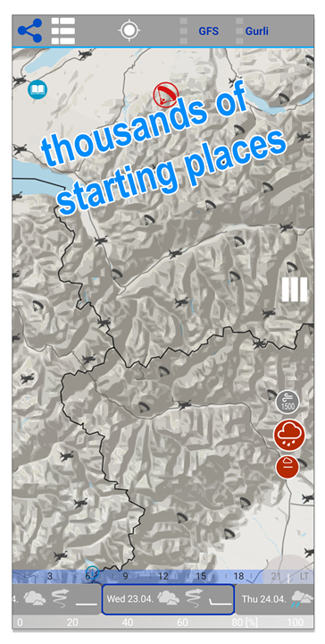 • Tap on any spot, airport, or launch site for a detailed vertical profile