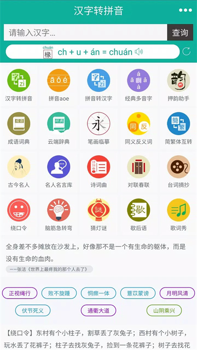 押韵助手:通过算法为用户提供押韵的字词和成语,便利创作和学习。