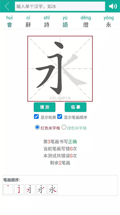 笔画顺序临摹:提供汉字笔画动画分解,用户可以通过描红练习书写,提高书写技巧。
