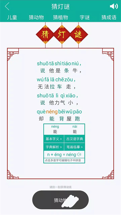 拓展知识:内置唐诗、宋词、元曲、名人名言、趣味歇后语、脑筋急转弯等内容,增加语言文化知识。