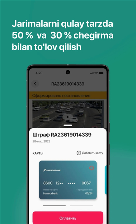 Jarimalarni tekshirish rasm va videolarini ko'rish va 30% chegirma bilan to'lash Download the latest version of Road24 Jarimalar Tekshirish to enjoy new features and updates immediately!