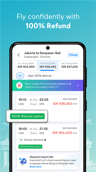 • Compare and book cheap flights from leading airlines such as Garuda Indonesia, AirAsia, Lion Air, Citilink, Batik Air, Singapore Airlines, Emirates, and more.