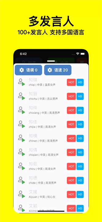 提供超过100位虚拟发言人,涵盖多种声音风格和语调,帮助你为不同的场景选择最合适的配音。