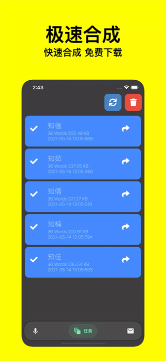 界面简洁,用户只需输入文字,选择发音人及语言,点击合成即可快速获得语音文件。