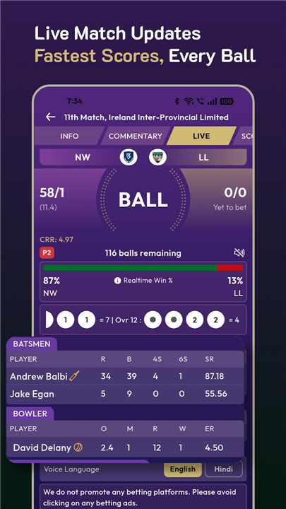 • Choose between English and Hindi commentary for a personalized, immersive experience