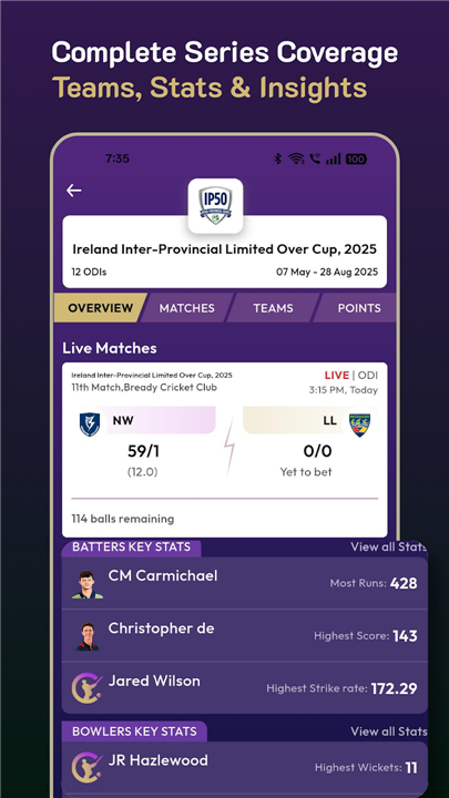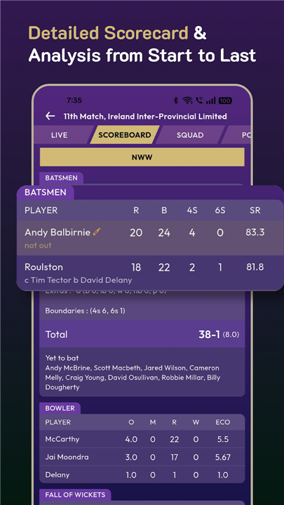 • Real-time ball-by-ball updates that keep you in sync with every delivery