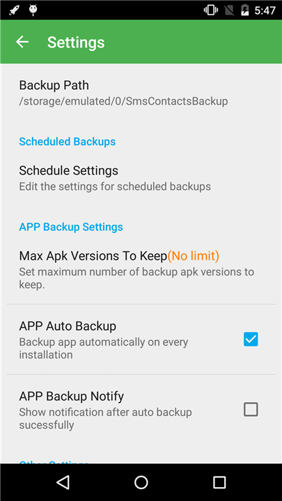 • Schedule automatic backups (feature not supported starting from Android 13).