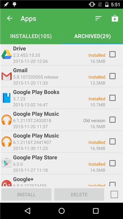 • Bookmarks and History: Enables backup and restore of web bookmarks (feature limited by Android version).