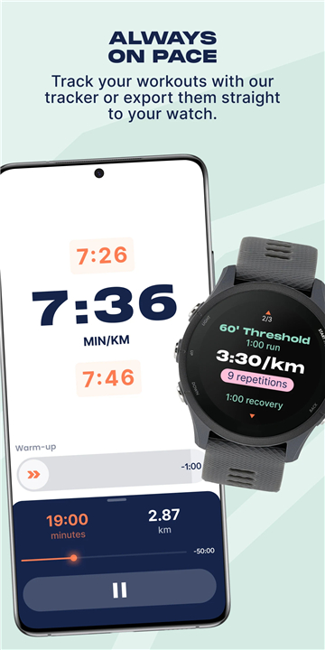 • Build your plan, sync your workouts, track your performance, and run with purpose — from your first 5K to your marathon finish line.